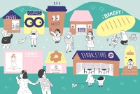 Illustrations for a hostel called NIHAO@Taipei to show the room of the building.